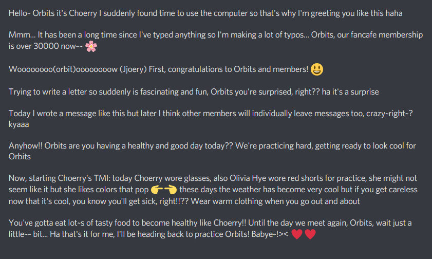 [ENG] #Choerry's hand-written letter to Orbits for #2YearsWithChoerry
