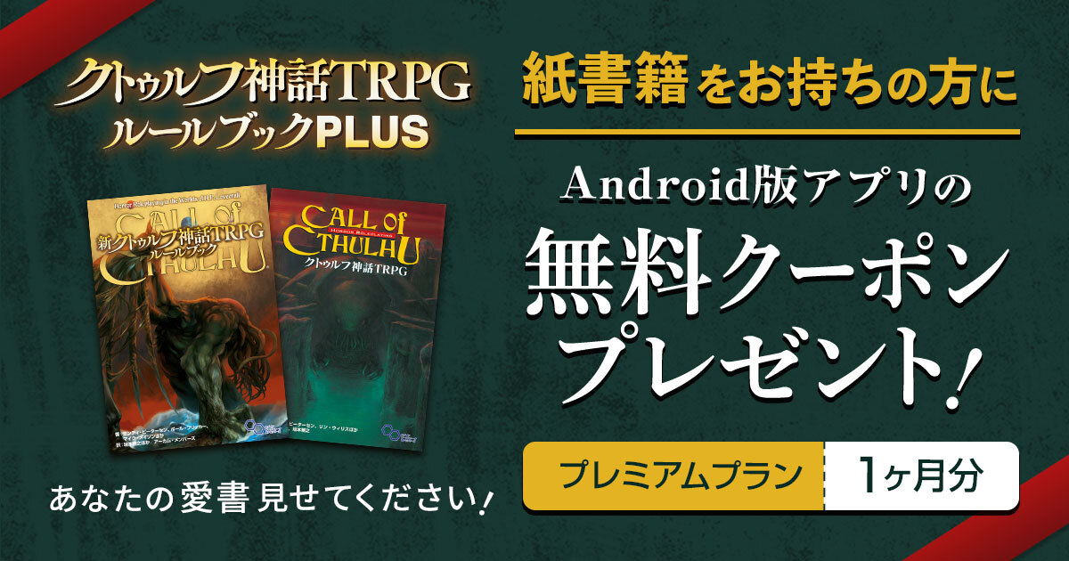 正しい信仰心をお持ちの方から抽選で50名様にAndroid版も登場した #CoCルルブプラス のプレミアムプラン1か月無料クーポンをプレゼント!
