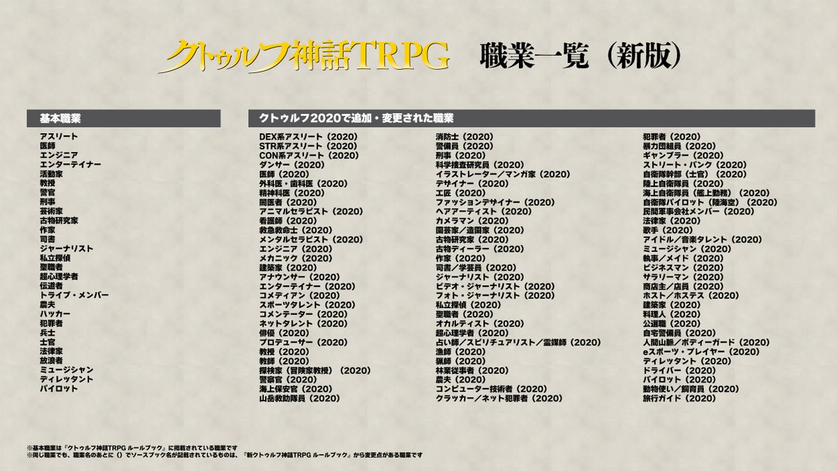 【#クトゥルフ神話TRPG 職業一覧】