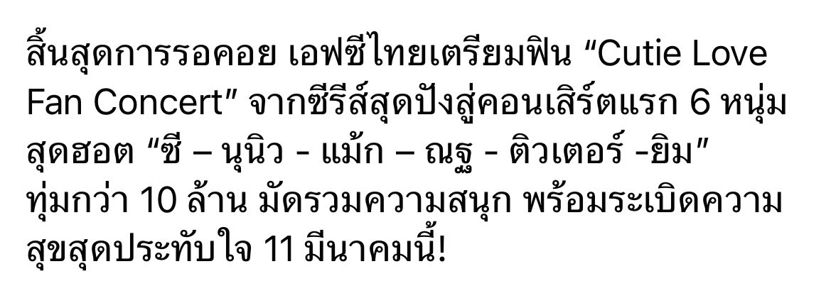 "ซี - นุนิว - แม้ก - ณฐ - ติวเตอร์ -ยิม" รับรองว่าทุกคนจะเต็มอิ่มกับคอนเสิร์ต "Cutie Love Fan Concert" 11 มีนาคมนี้! มากันเยอะๆนะ