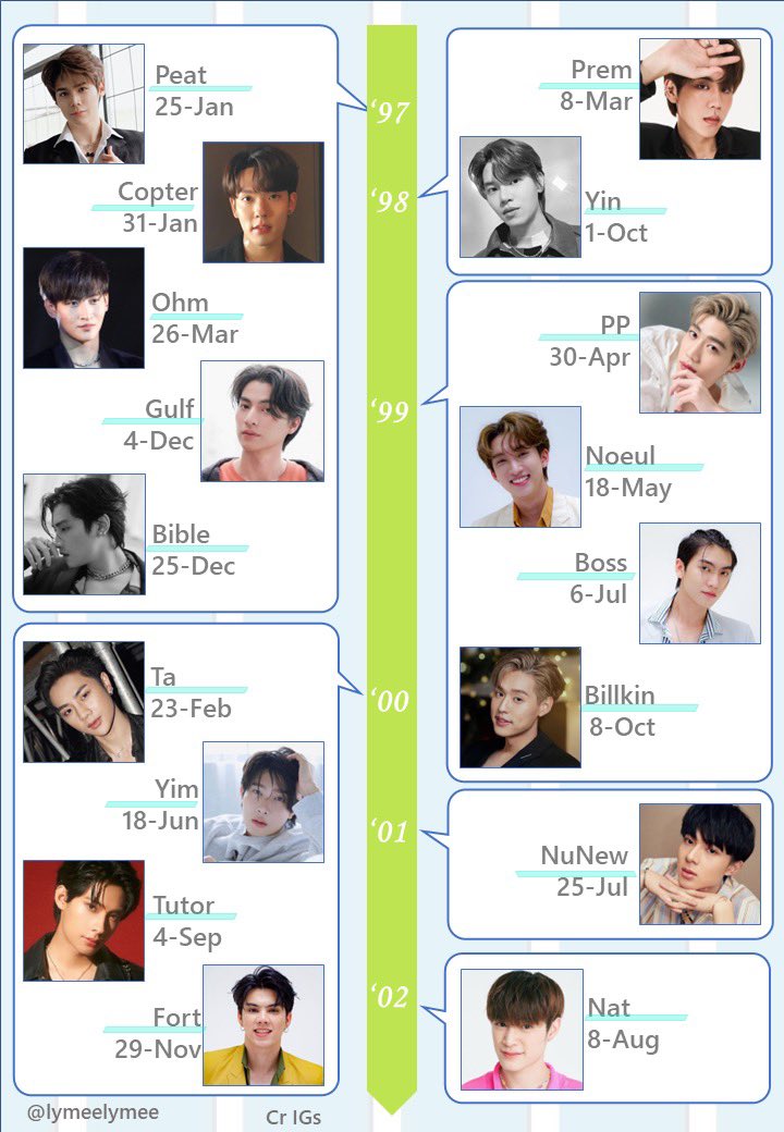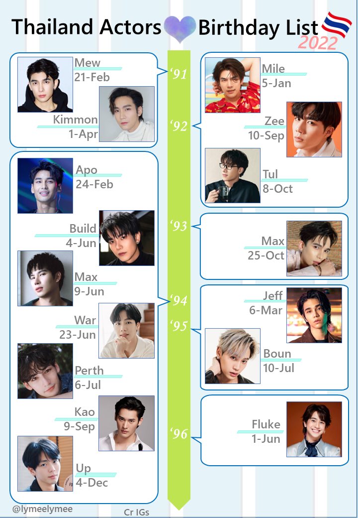 【タイ俳優生まれ年順 誕生日リスト】