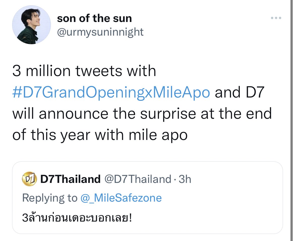 D7 must be elated. Most tweeted hashtags in Thailand for the last 7 days are about D7 and MileApo. Today's hashtag is already on #1 spot with 2 Million tweets.