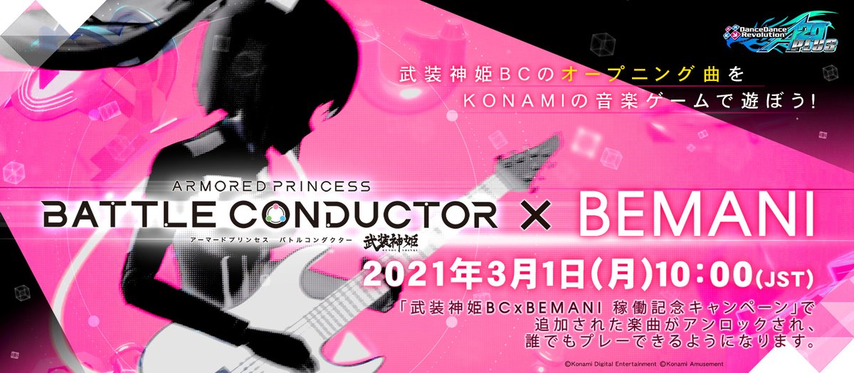 3月1日(月)10:00(JST)より「武装神姫BC×BEMANI 稼働記念キャンペーン」で追加された楽曲がアンロックされ、誰でもプレーできるようになります。