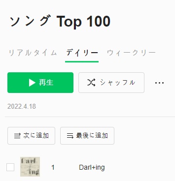 [CHARTS] #Darling spends now 3 consecutive days at #1 on Line Music Japan Daily Top 100, 4 days in total on the chart.