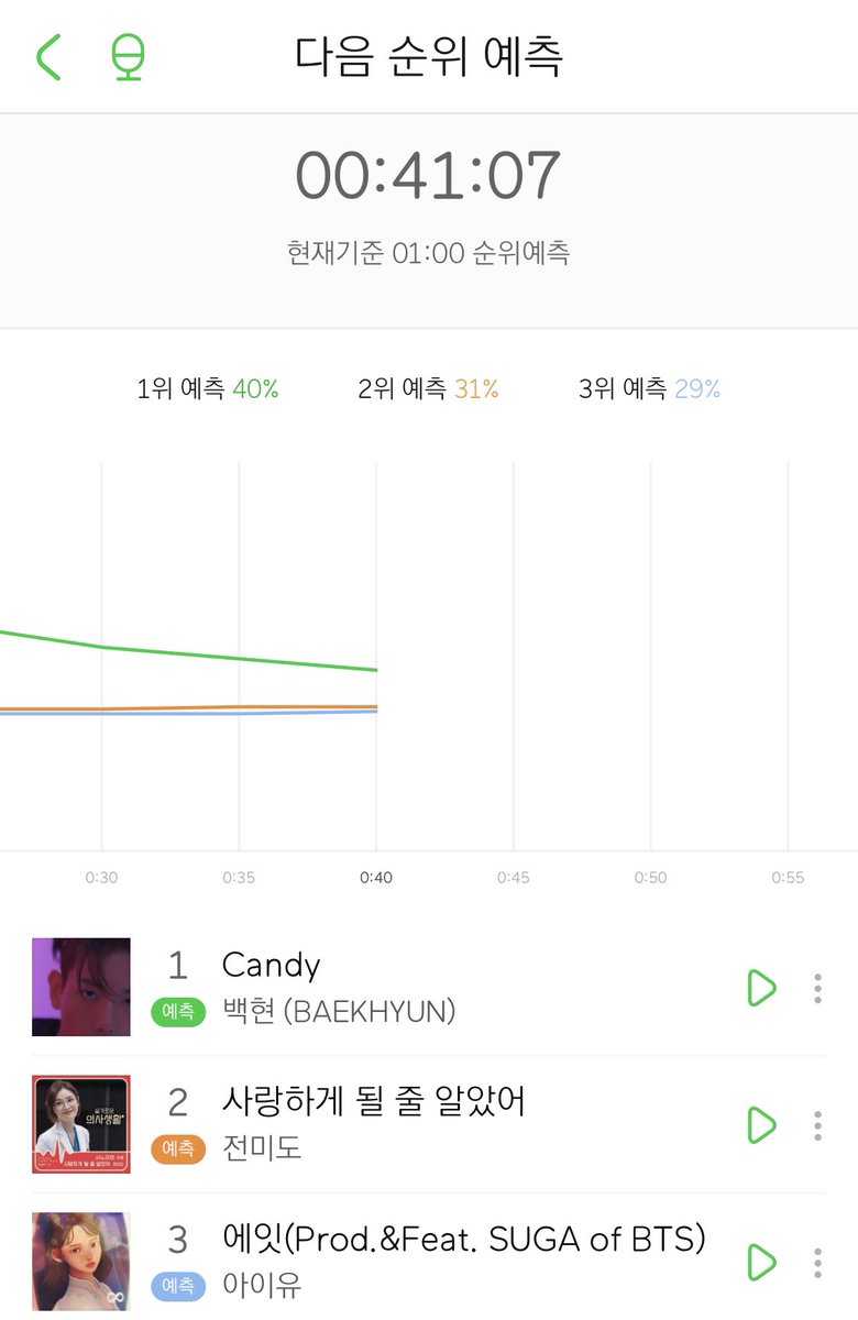 잘 따라잡고 있습니다 ! 오늘의 표는 잊지 말고 백현이에게 투표해주세요 ! 또한 드라마 막방으로 인한 멜론 그래프 상승😢 스밍 틈틈히 확인하며 다운 받아주세요 ‼️