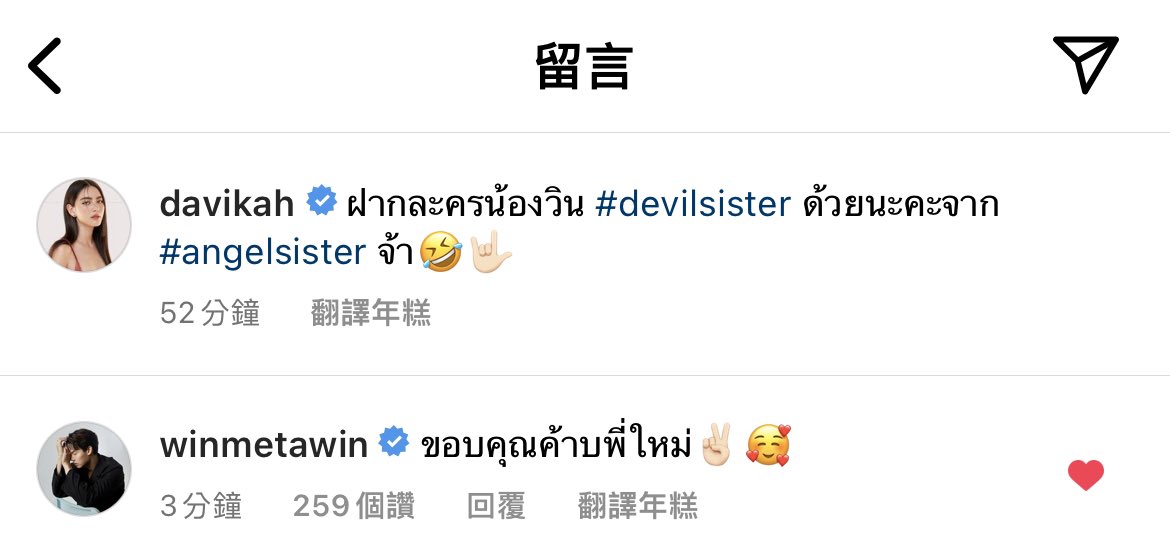 M: Please follow nong Win’s series #DevilSister na ka from #AngelSister jaaa 😂🤟🏻