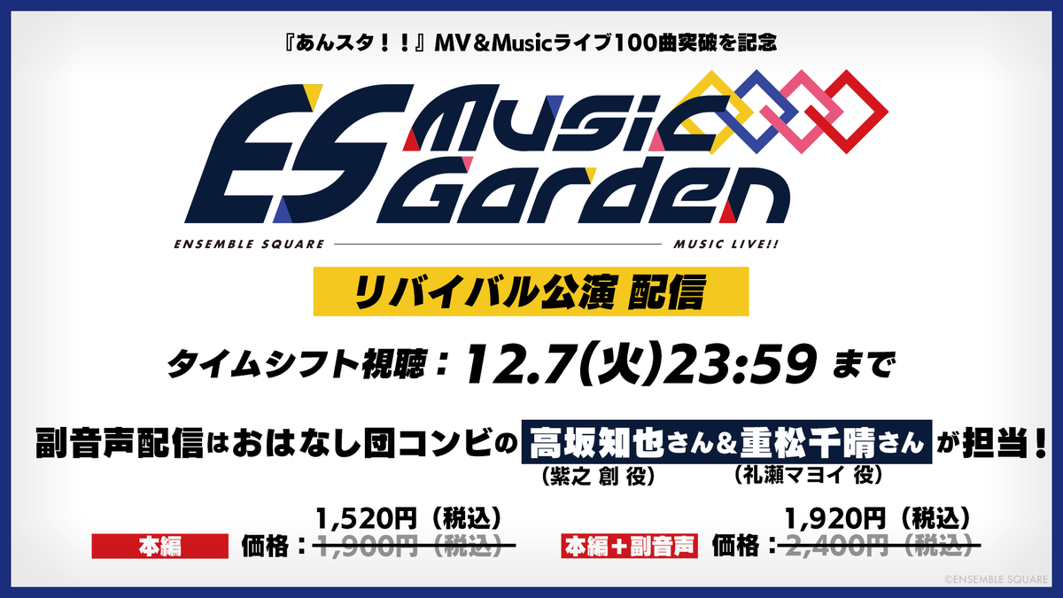 「ES Music Garden」リバイバル千秋楽のタイムシフト視聴は✨12月7日(火)23:59✨まで!
