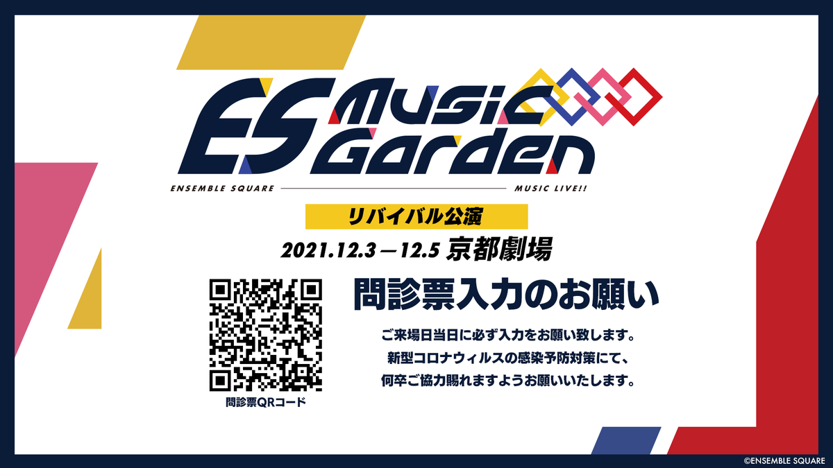 「ES Music Garden」リバイバル公演にご来場されるお客様におきましては、必ずご来場当日に下記問診票にご回答ください。