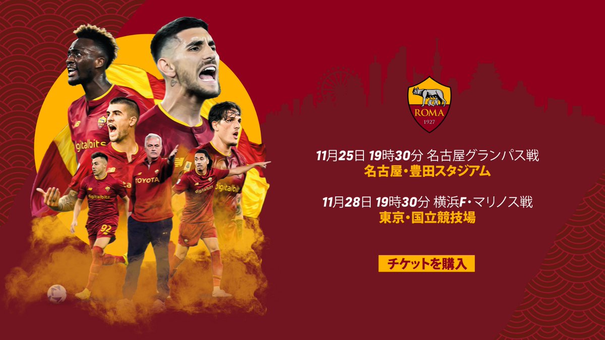#モウリーニョ 監督率いる、イタリアの名門 #ASRoma が来日🇮🇹 共に #豊田スタジアム で闘いましょう🤜🤛