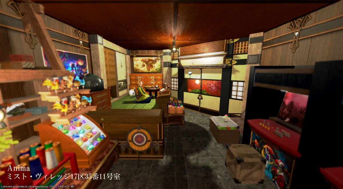 新作の個室「昭和の駄菓子屋」を作りました。レトロなゲーム筐体に沢山の駄菓子、夕暮れの薄暗い店内に風鈴の涼し気な音。ノスタルジック housingsnap.com/5696 #FF14ハウジング
