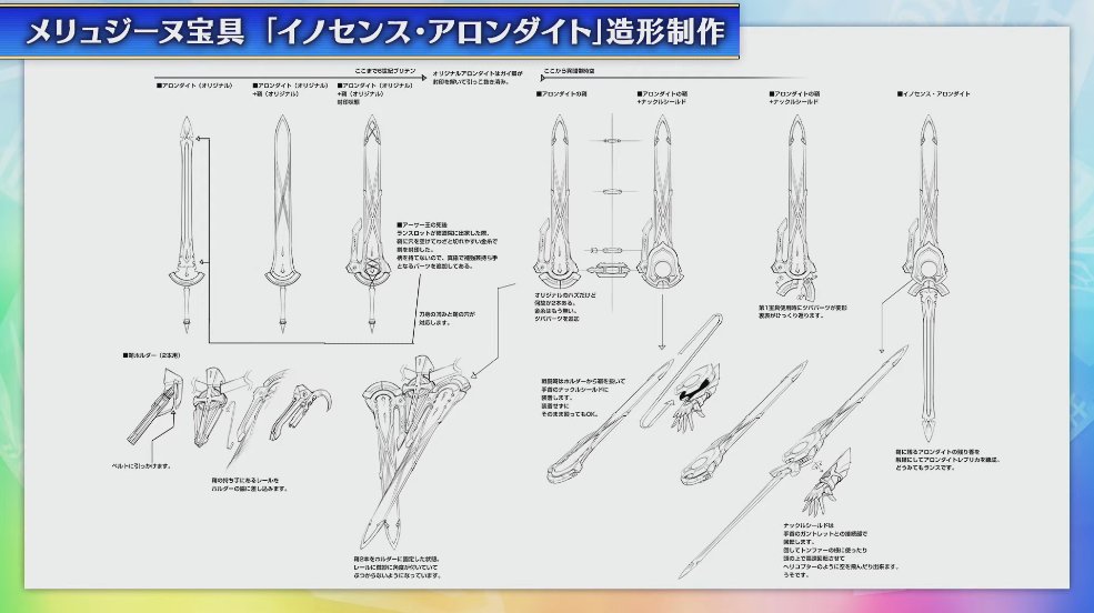 会場で展示されていたメリュジーヌの宝具「イノセンス・アロンダイト」の設定画など制作過程です