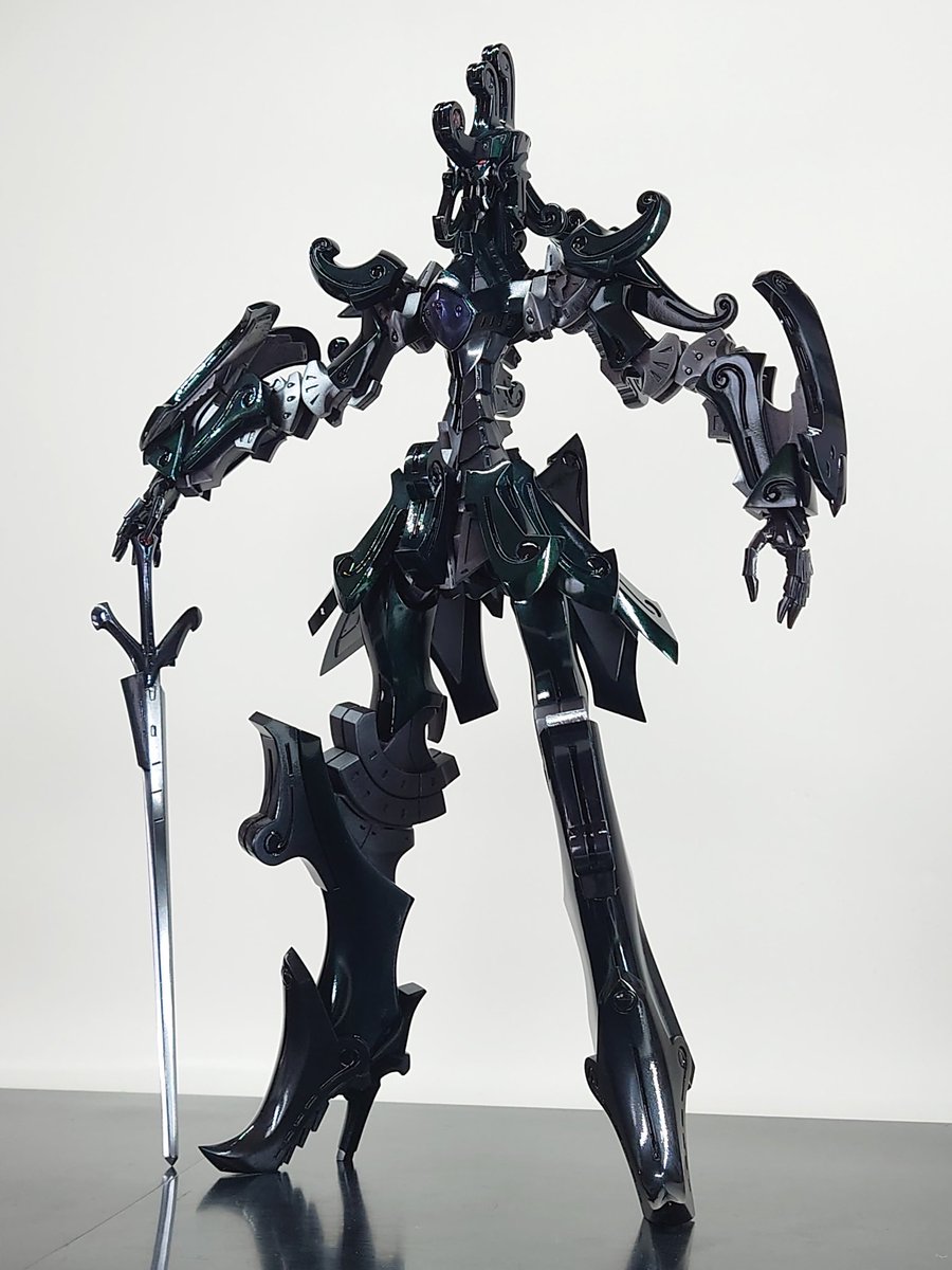 ダッカス完成しました!製作期間2年半の人生初フルスクラッチ、何度も挫折しそうになるも何とか完結させる事が出来ました。全高約34センチなのでほぼボークスのキットと同じ位の大きさ、設定画を参考にしオーバーホール前仕様で製作しました。