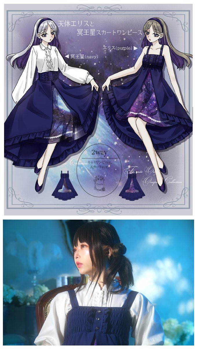 Favoriteオリジナル✨2way🌟天体エリスと冥王星スカートワンピース👗🌌💫👗🌌💫ウエストゴムのフリーサイズ💕