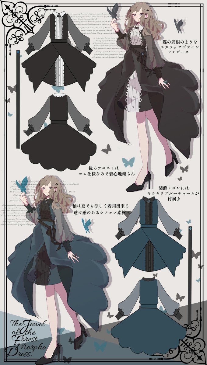 Favoriteオリジナル✨ フォレストジュエルスカラップ*モルフォワンピース 🦋👗💐🦋👗💐🦋