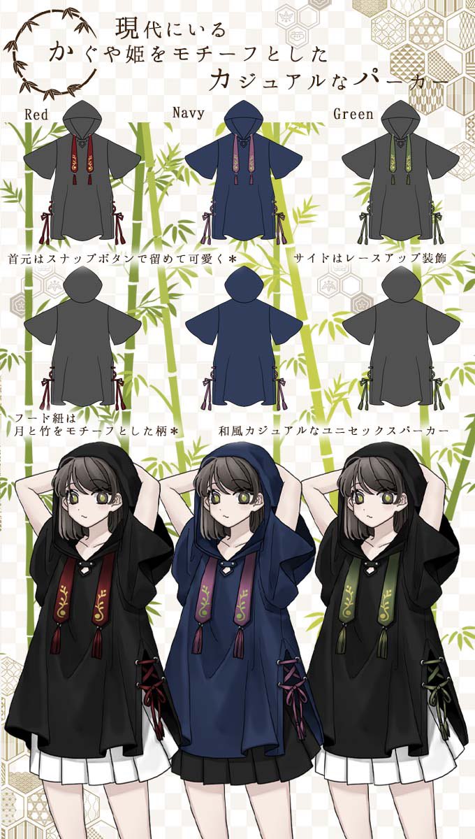 IRO+IRO🖤❤️ 現代風かぐやの*ユニセックスカジュアルパーカー🎋🎋男女兼用のBIGシルエット🚹