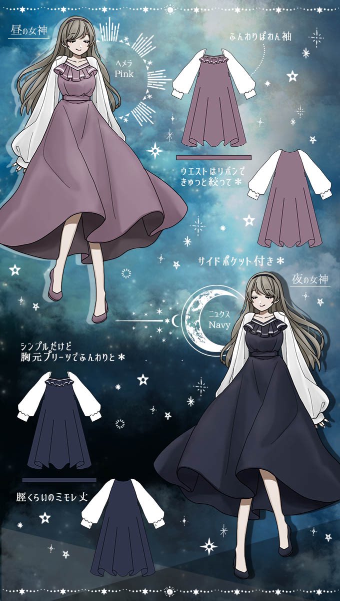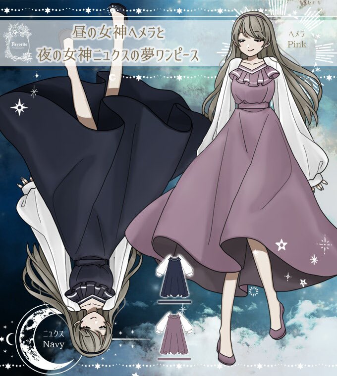 Favoriteオリジナル✨昼の女神と夜の女神+*:ヘメラとニュクスの夢ワンピース👗👰♀️✨