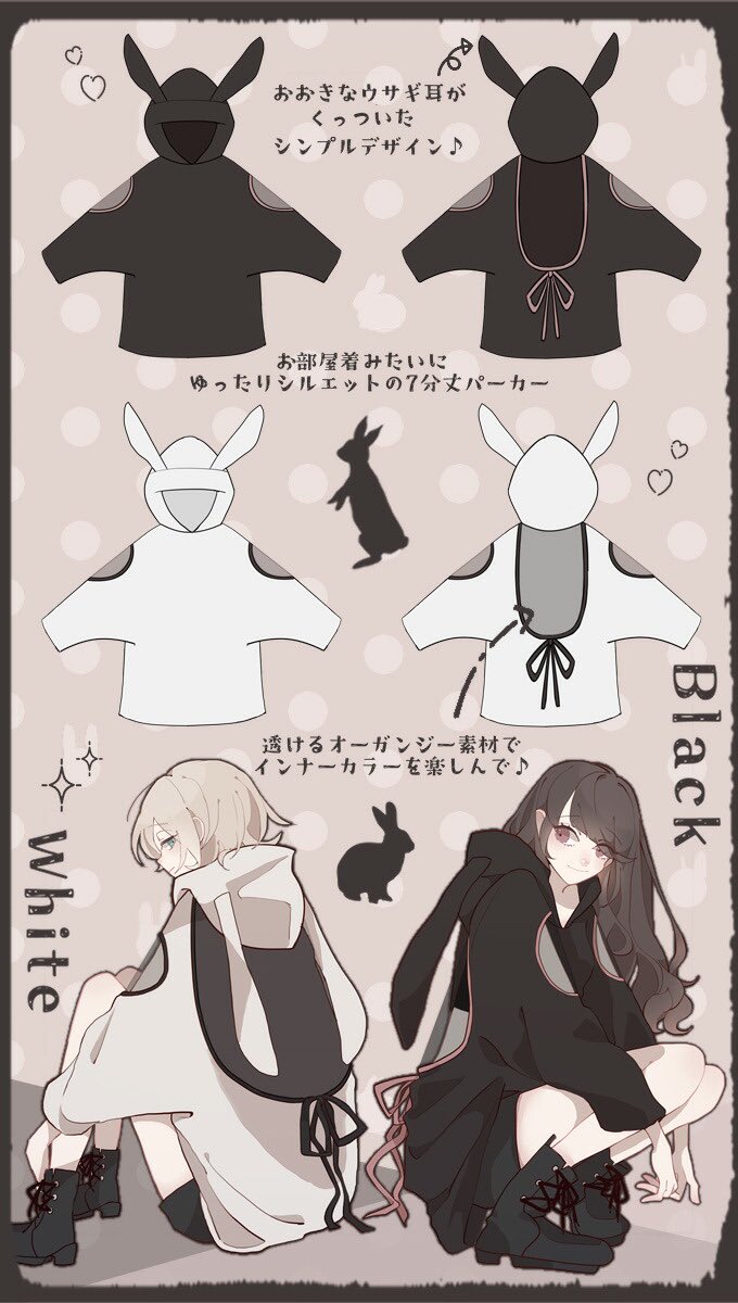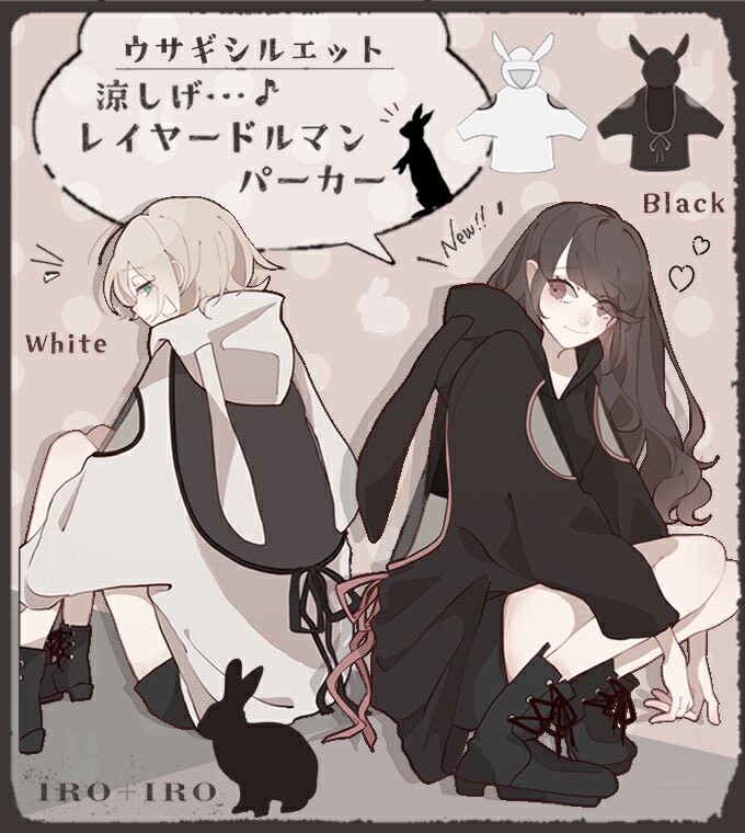 IRO+IRO🖤🤍ウサギシルエット*涼しげレイヤードパーカー🐰🐰🐰背中を開けて涼しげDesign♬男女兼用BIGシルエット🚹