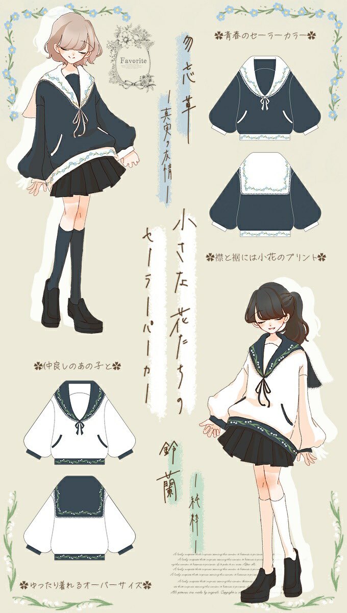 Favoriteオリジナル✨ 小さな花達のセーラーパーカー💐🌸🥀勿忘草・鈴蘭✨