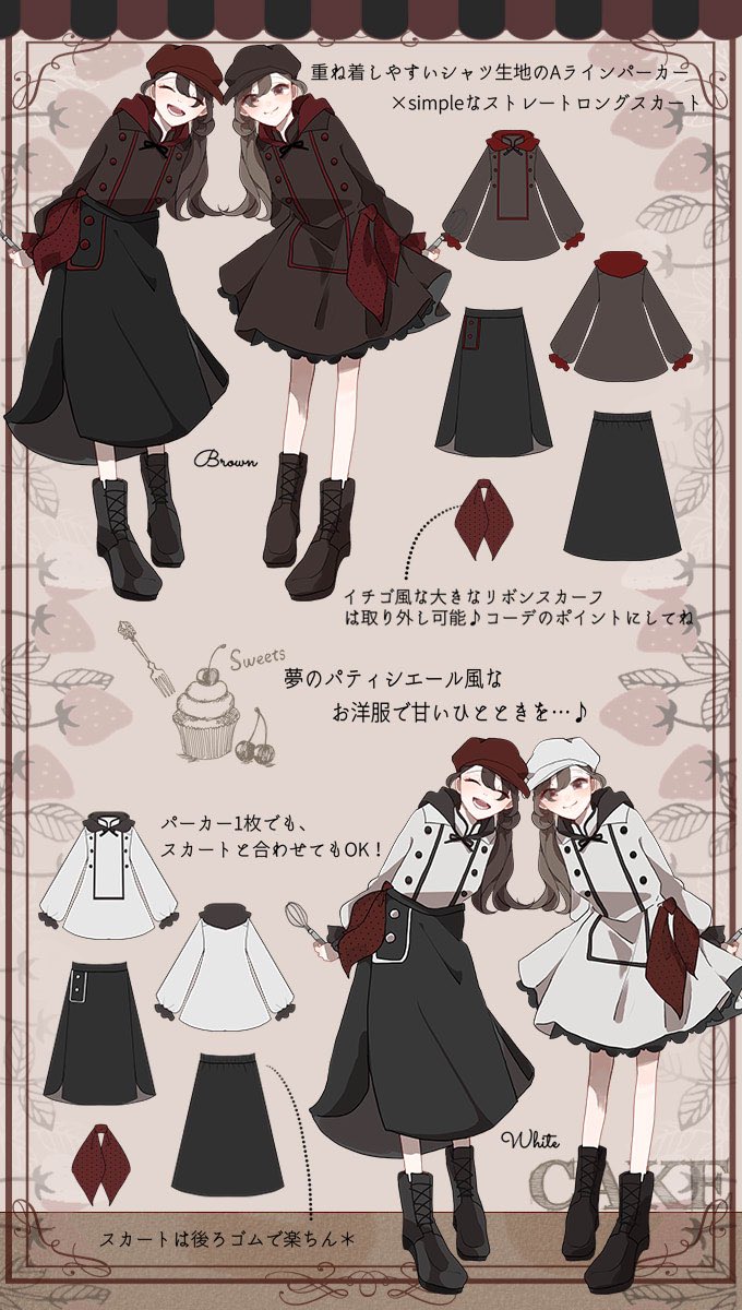 Favoriteオリジナル✨パティシエシャツパーカー&スカートセット🧁🍮🍰🍨🍓🧁🍮🍰🍨🍓