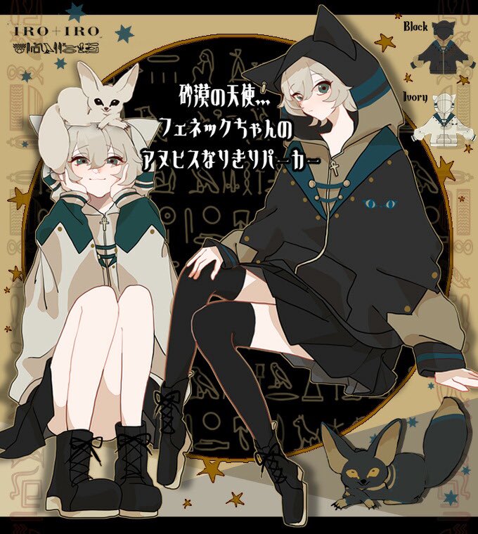 IRO+IRO🖤🤍砂漠の天使…フェネックちゃんのアヌビスなりきりパーカー🐱💕💫男女兼用Design🚹🚺