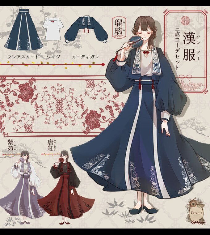 Favoriteオリジナル✨ 漢服風チャイナ3点コーデセット🇨🇳【瑠璃・唐紅・紫苑】