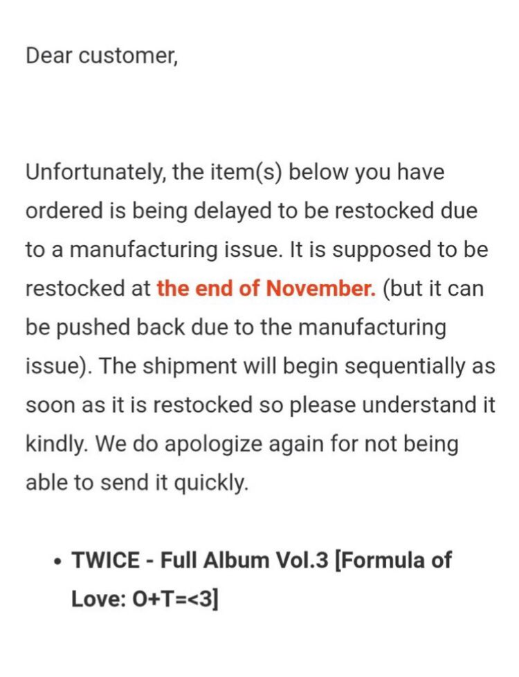 Apparently there have been manufacturing issues during #FormulaOfLove now most of the albums came from (Withdrama, Ktown4u) are now delayed.