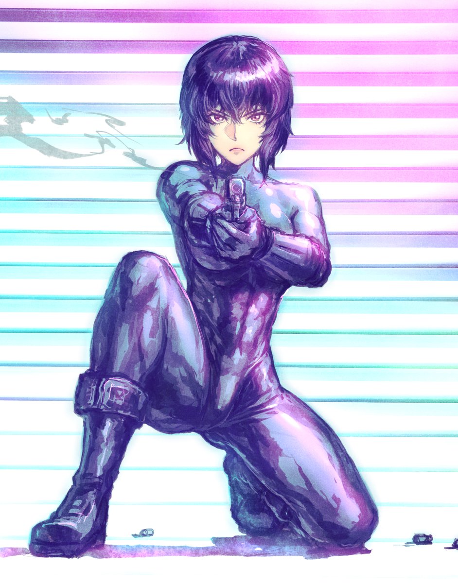草薙素子。以前描いたラフを少し着色。