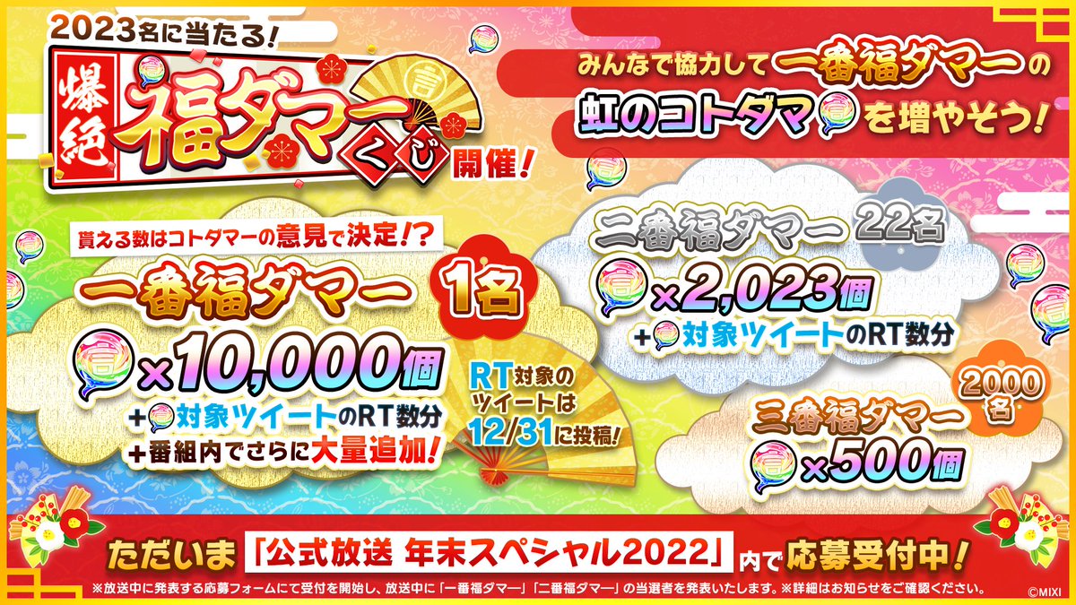 番組終了後にお年玉として虹のコトダマ1,000個プレゼントじゃ〜!
