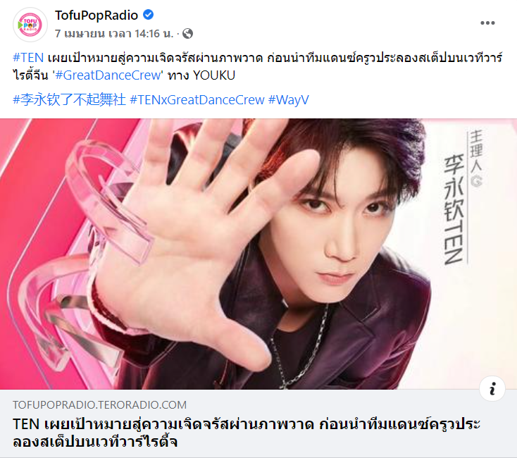 #TEN เผยเป้าหมายสู่ความเจิดจรัสผ่านภาพวาด ก่อนนำทีมแดนซ์ครูวประลองสเต็ปบนเวทีวาร์ไรตี้จีน '#GreatDanceCrew' ทาง YOUKU