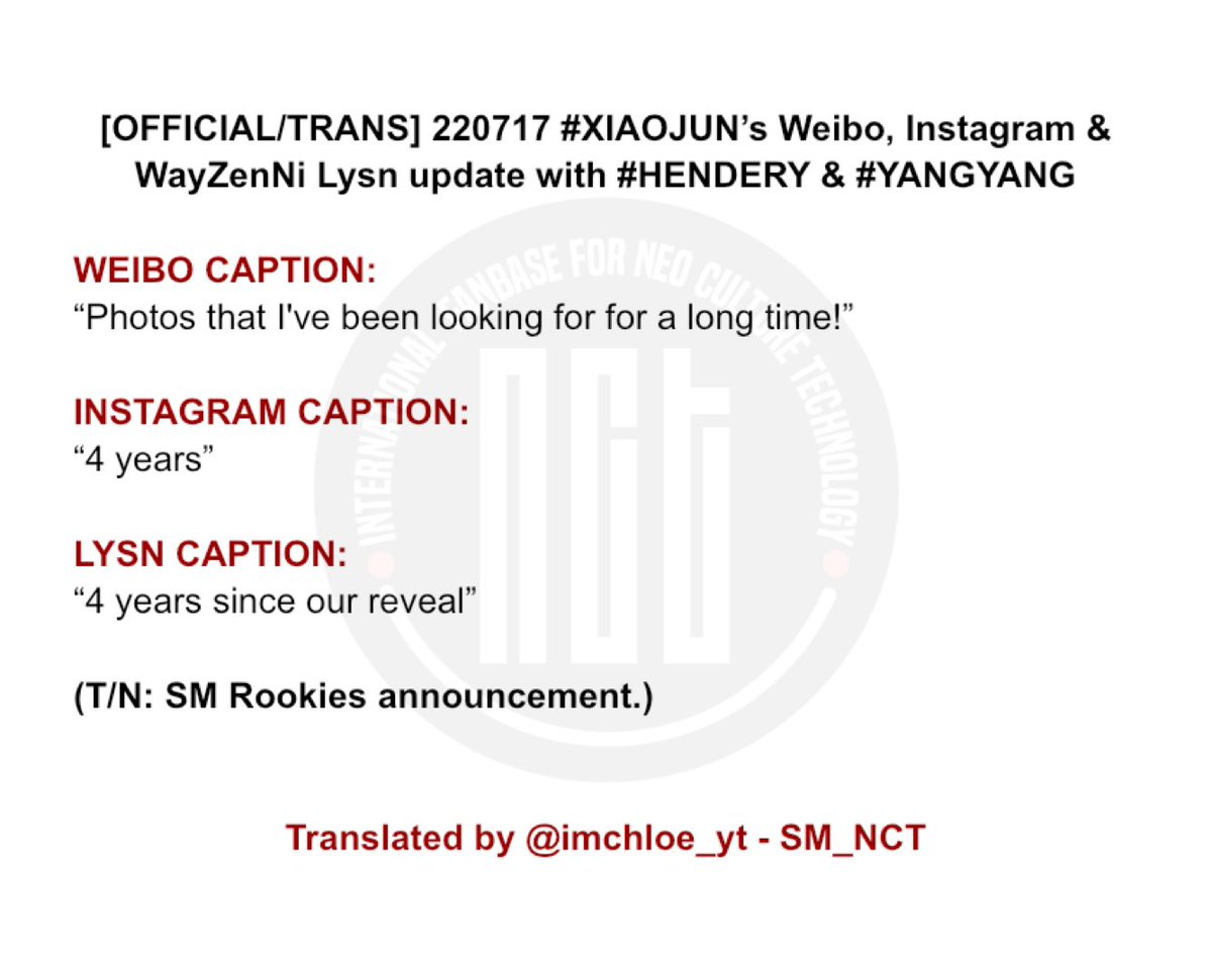 [OFFICIAL/TRANS] 220717 #XIAOJUN’s Weibo, Instagram & WayZenNi Lysn update with #HENDERY & #YANGYANG