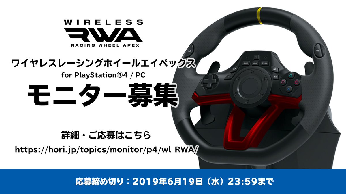 ホリ新商品、ワイヤレスで自由なプレイスタイルを実現した「ワイヤレスレーシングホイールエイペックス for PlayStation®4 / PC」のモニターを募集します!