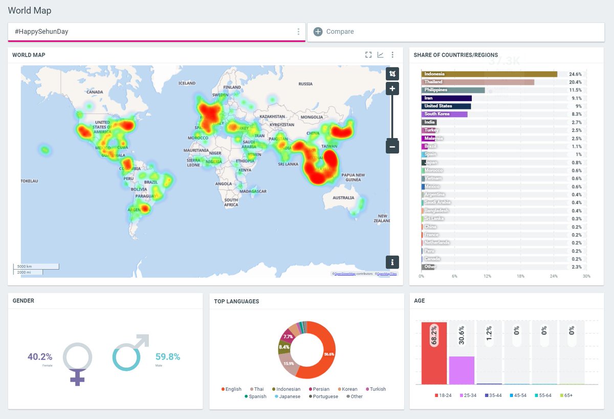 Top 25 Countries with Most Tweets about #HappySehunDay