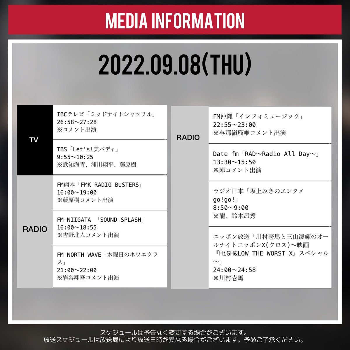 いよいよ公開『HiGH&LOW THE WORST X』を大特集!THE RAMPAGEの川村壱馬&長谷川慎が今週もスタジオに登場!2人のプライベートトークも!
