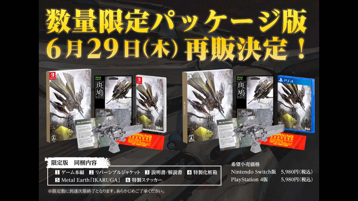 #NintendoSwitch #PS4『 #斑鳩 #IKARUGA 』限定パッケージ版が、明日9月26日(土)、ごく僅かながら再販。入手できなかった人は、下記「Pikii Store」の「再入荷お知らせ」をクリック! 入手できた人は、是非、Metal Earth「IKARUGA」製作にチャレンジ!