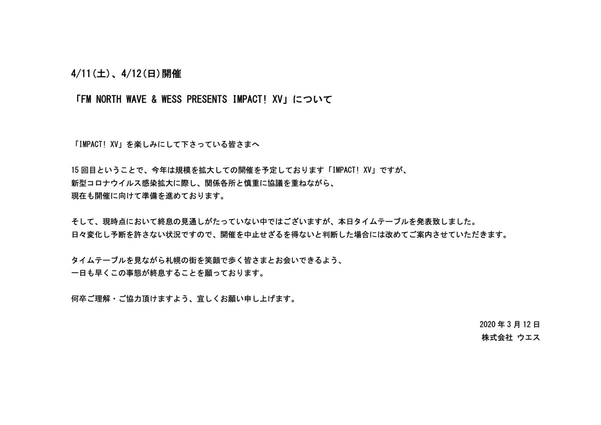 4/20(土)「FM NORTH WAVE & WESS PRESENTS IMPACT!XIV supported by アルキタ」