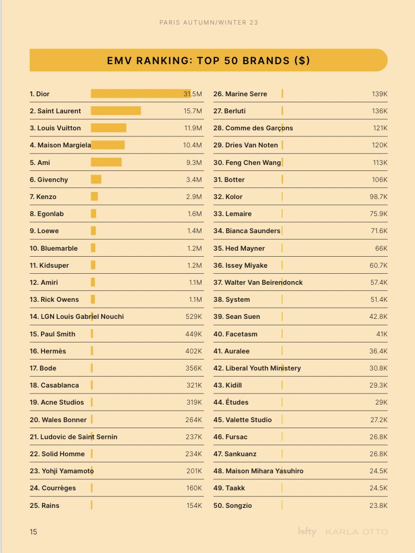 Dior significantly saw a 370% increase with a total of $31.5M in EMV which was the highest among the brands and more than twice Dior's 2nd competitor.