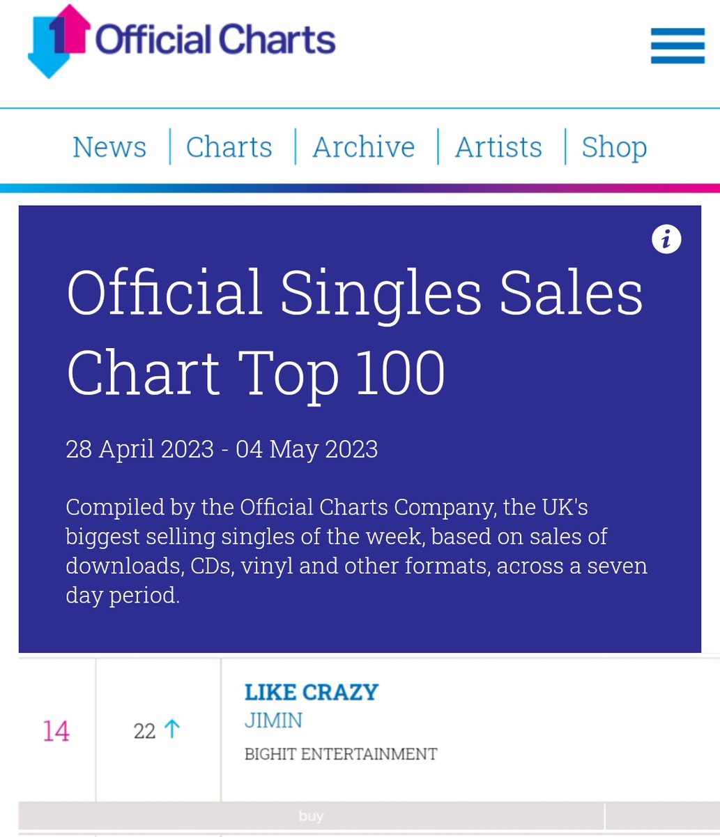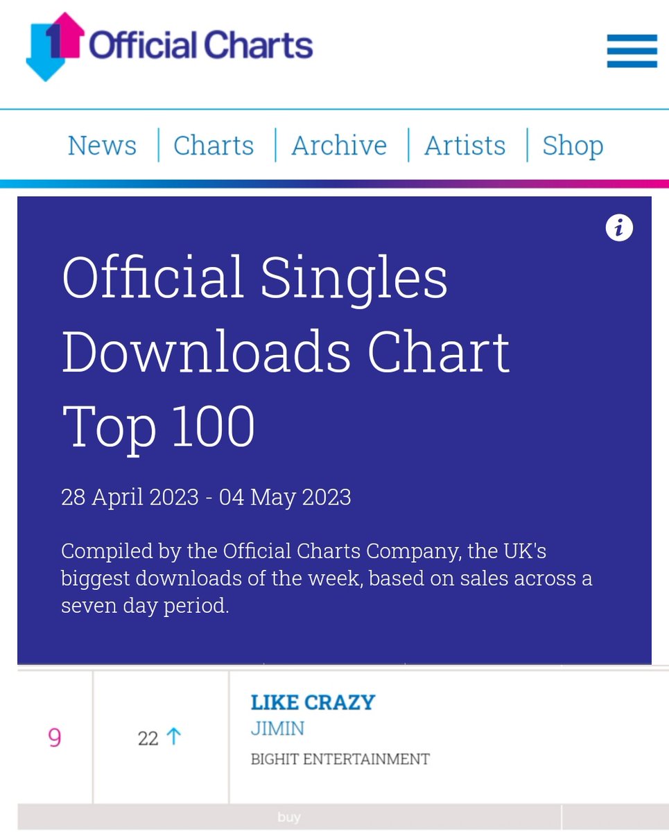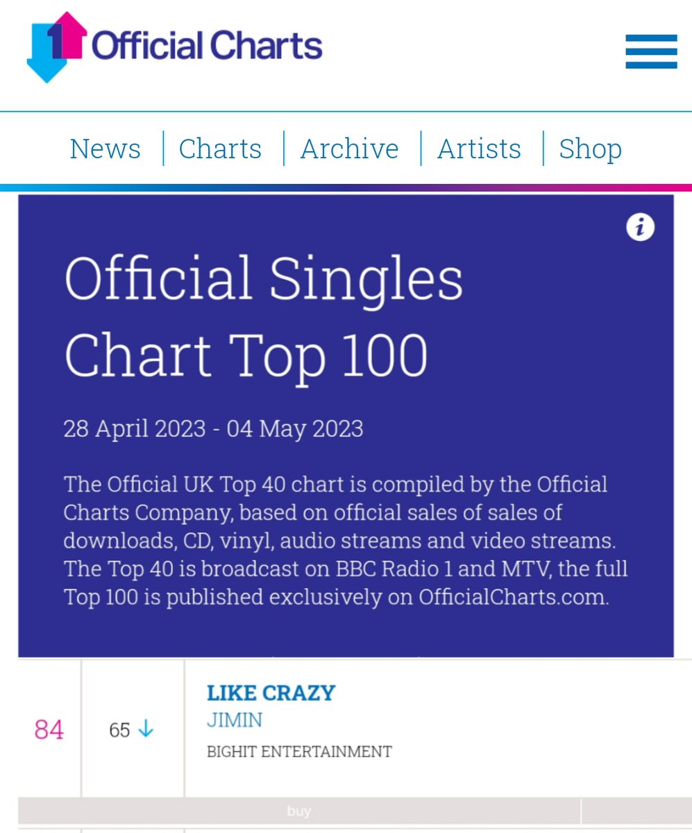 지민의 #LikeCrazy 가 이번주 영국 Official Singles Chart에서 84위에 랭킹되면서 5주 연속 차트인 이어가고 있습니다.