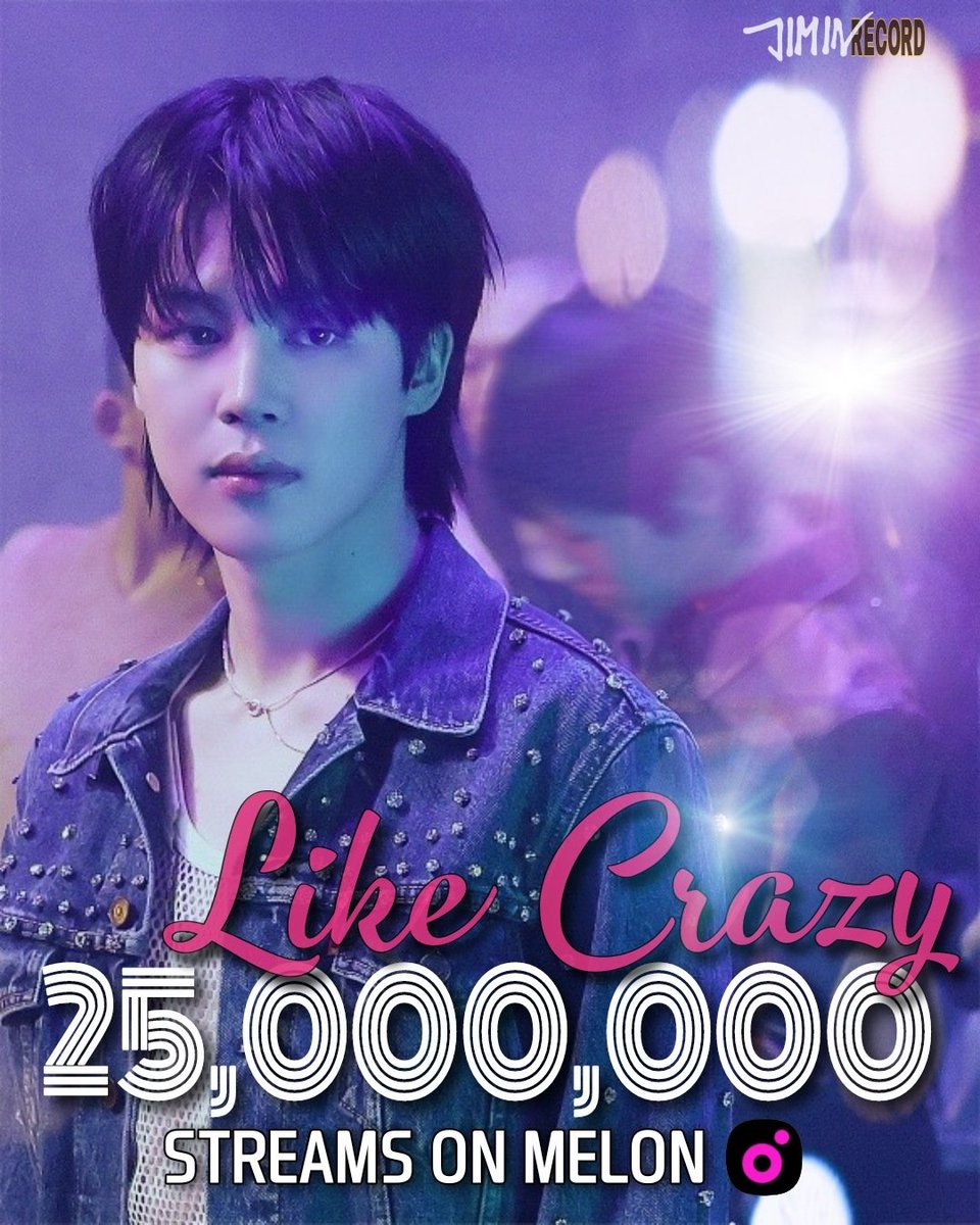지민의 타이틀곡 "Like Crazy"가 MELON에서 2500만 스트리밍을 돌파했습니다.