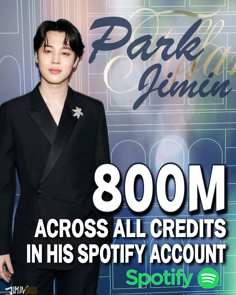지민 스포티파이 개인 계정의 총 누적 스트리밍이 8억을 돌파하였습니다.