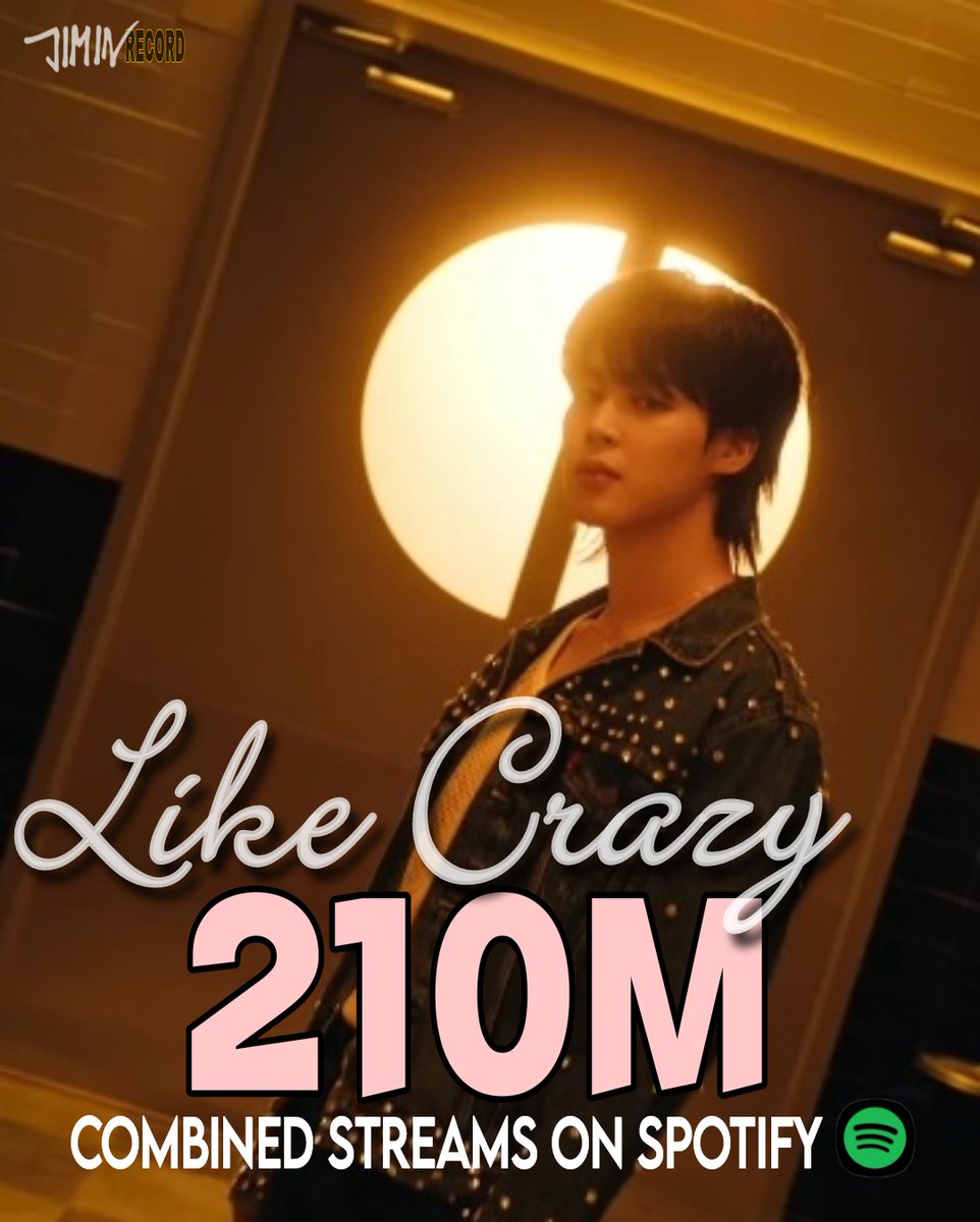 지민의 타이틀곡 "Like Crazy"의 Korean Version과 English Version의 Spotify 합산 스트리밍이 2억 1000만 스트리밍을 돌파하였습니다.