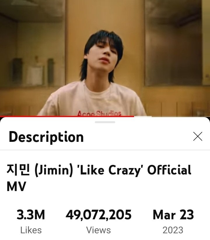 지민의 "Like Crazy" Official MV가 유튜브에서 조회수 4900만뷰를 돌파했습니다.