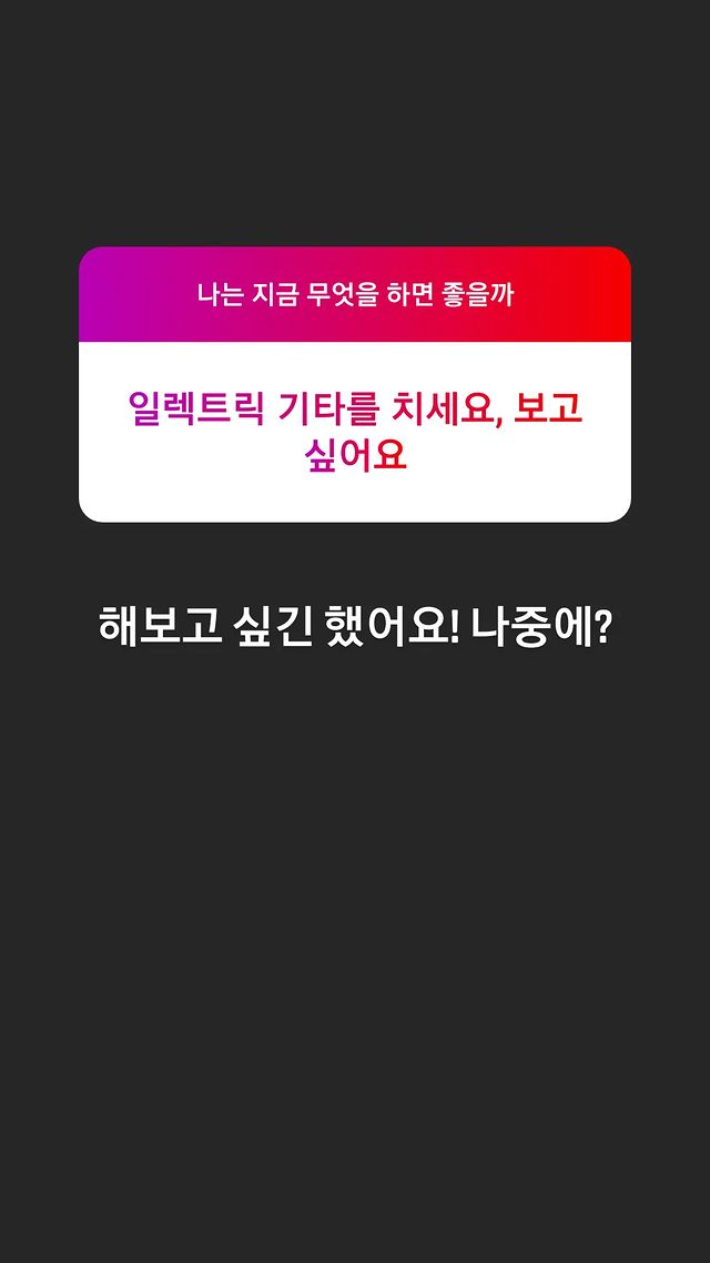 💜: ดีดกีต้าร์ไฟฟ้าสิคะ อยากเห็นจัง