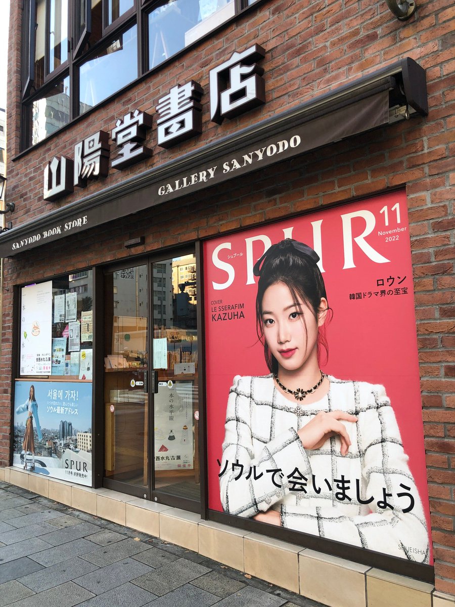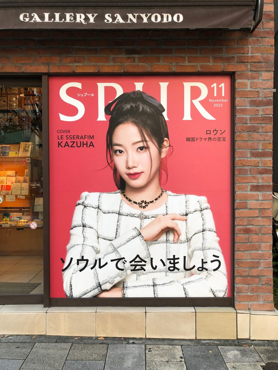 【好評発売中!】#LE_SSERAFIM の #KAZUHA さんが初登場を果たした SPUR11月号は昨日より発売中。表参道の山陽堂書店には、KAZUHAさんのポスターも登場🌹✨ #KAZUHA_SPUR lnky.jp/nVRQDQO