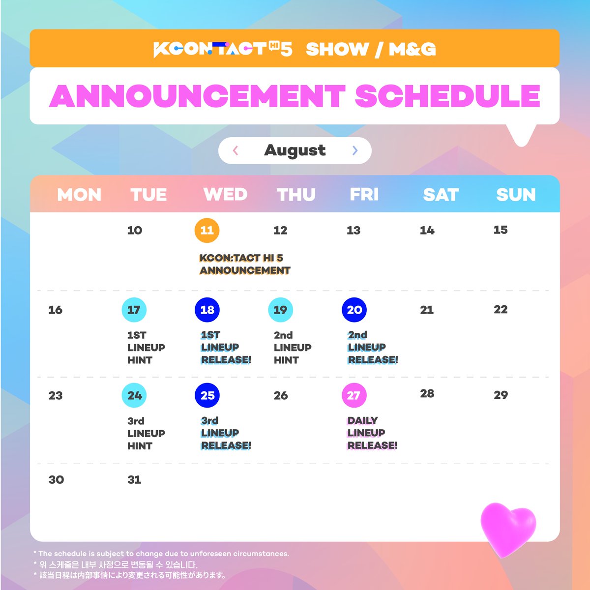 Please check out the upcoming KCON:TACT HI 5, SHOW/M&G schedule that will be held in September!