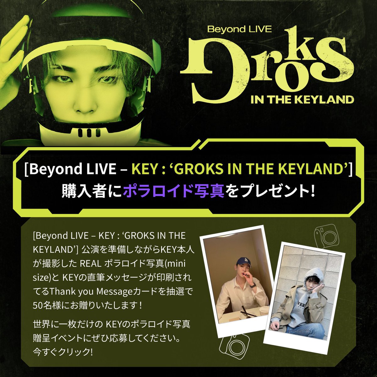 [Beyond LIVE – KEY : ‘GROKS IN THE KEYLAND’] 視聴チケット購入者の中で、抽選で50名様にキーのポラロイドと手書きメッセージをプレゼントします🎁