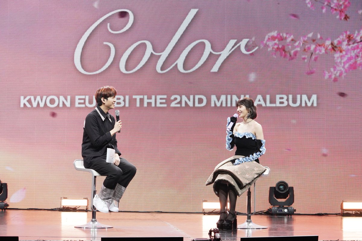 .@KWONEUNBI takes her music a step further with album "Color." "If I'd opened the doors to my soloist career with 'Open,' this time, I'm back more mature and colorful." Pictures show Eun-bi and comedian Yoo Jae-pil hosting the show. #KWONEUNBI #KWONEUNBI_Glitch