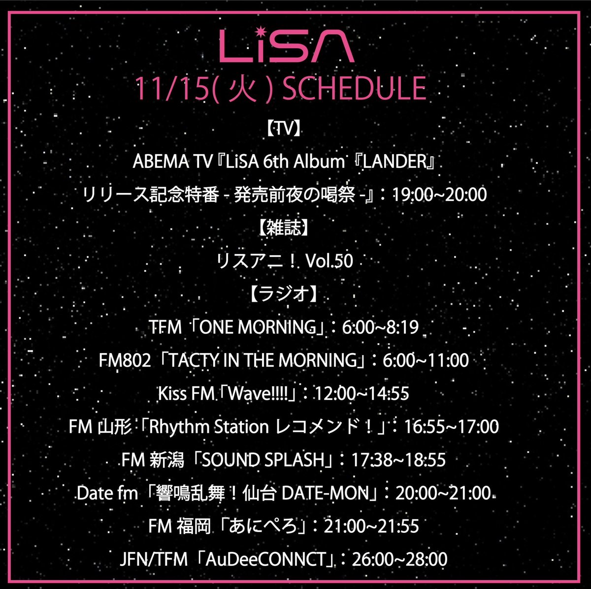 11/16 LiSA NEW ALBUM「LANDER」発売まで、あと2日🚀🪐