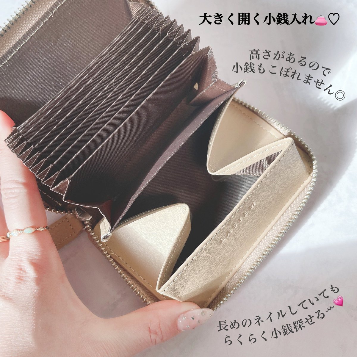 コンパクトで小さいバッグにも楽々入り、カード類も沢山入ります⭐️小銭入れも大きく開くのも便利ꕀ🥺