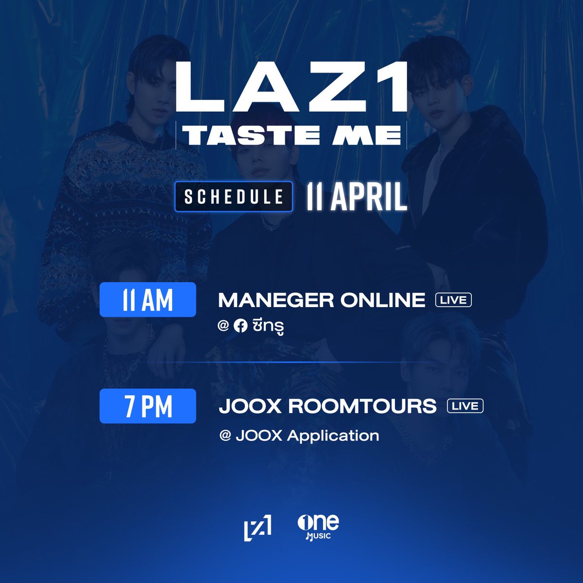 1 ทุ่มตรง เรามีนัดกัน!!! กับสงกรานต์ทิพย์ 💦 ✨ สาดความน่ารักกับ #เป็นต่อ และอีก 4 หนุ่ม วง #LAZ1 ในสัมภาษณ์สุดพิเศษ!!