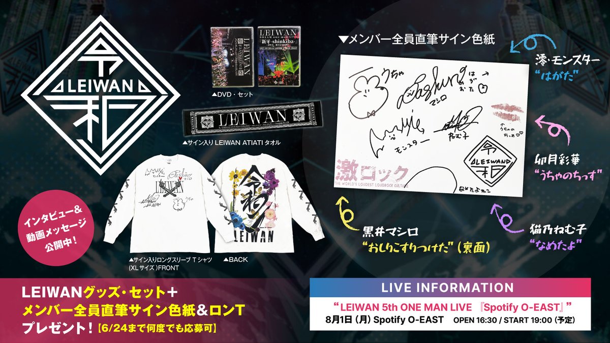 LEIWANグッズ・セット+メンバー全員直筆サイン色紙&ロンTプレゼント!